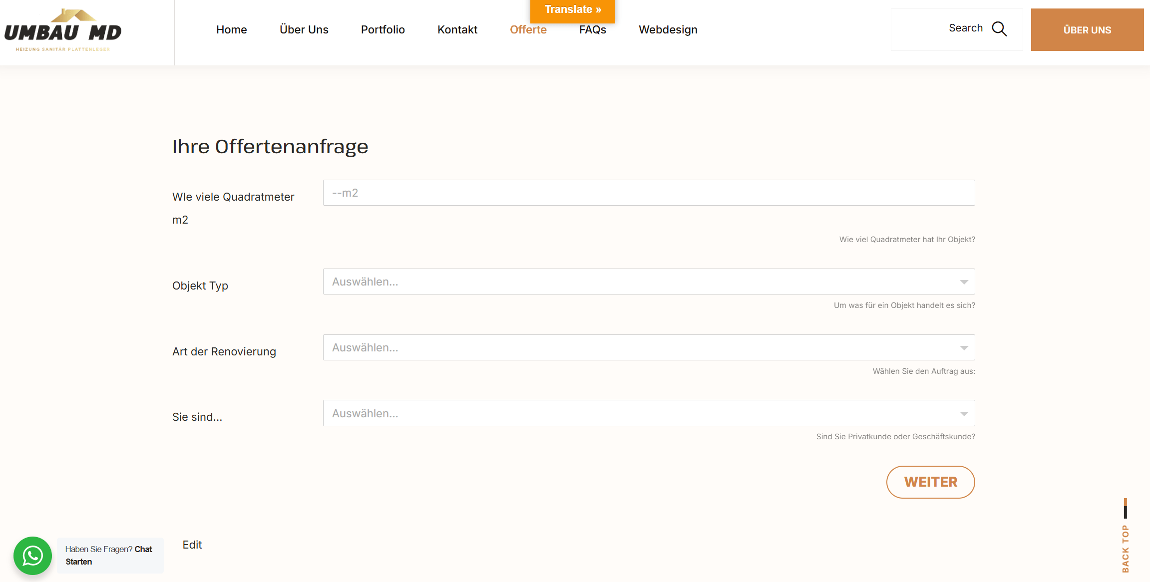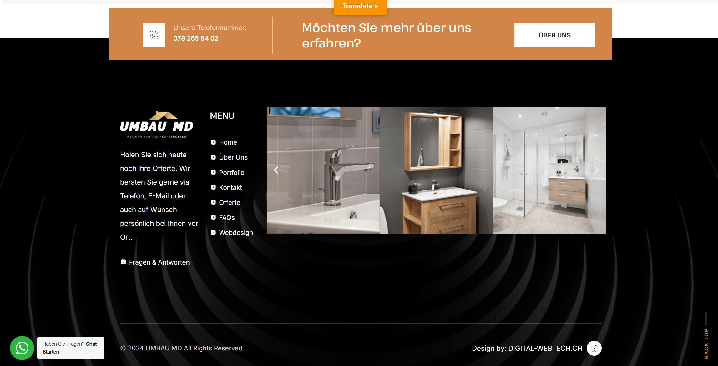 Umbau MD ist ein Unternehmen aus dem Kanton Solothurn und bietet verschiedene Dienstleistungen im Baugeschäft. Kontakt-Form, WhatsApp Chat, Spam Schutz, Web-Slider, SMTP, SPF, DMARC, DKIM, SEO Basic, SSL usw.