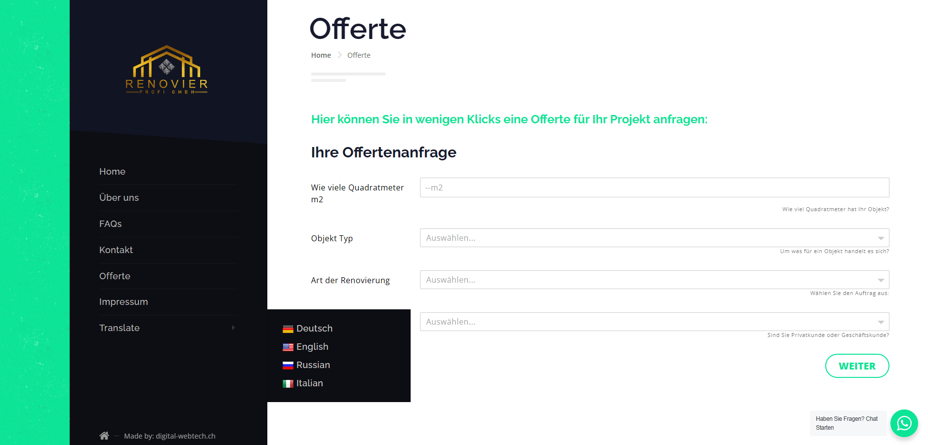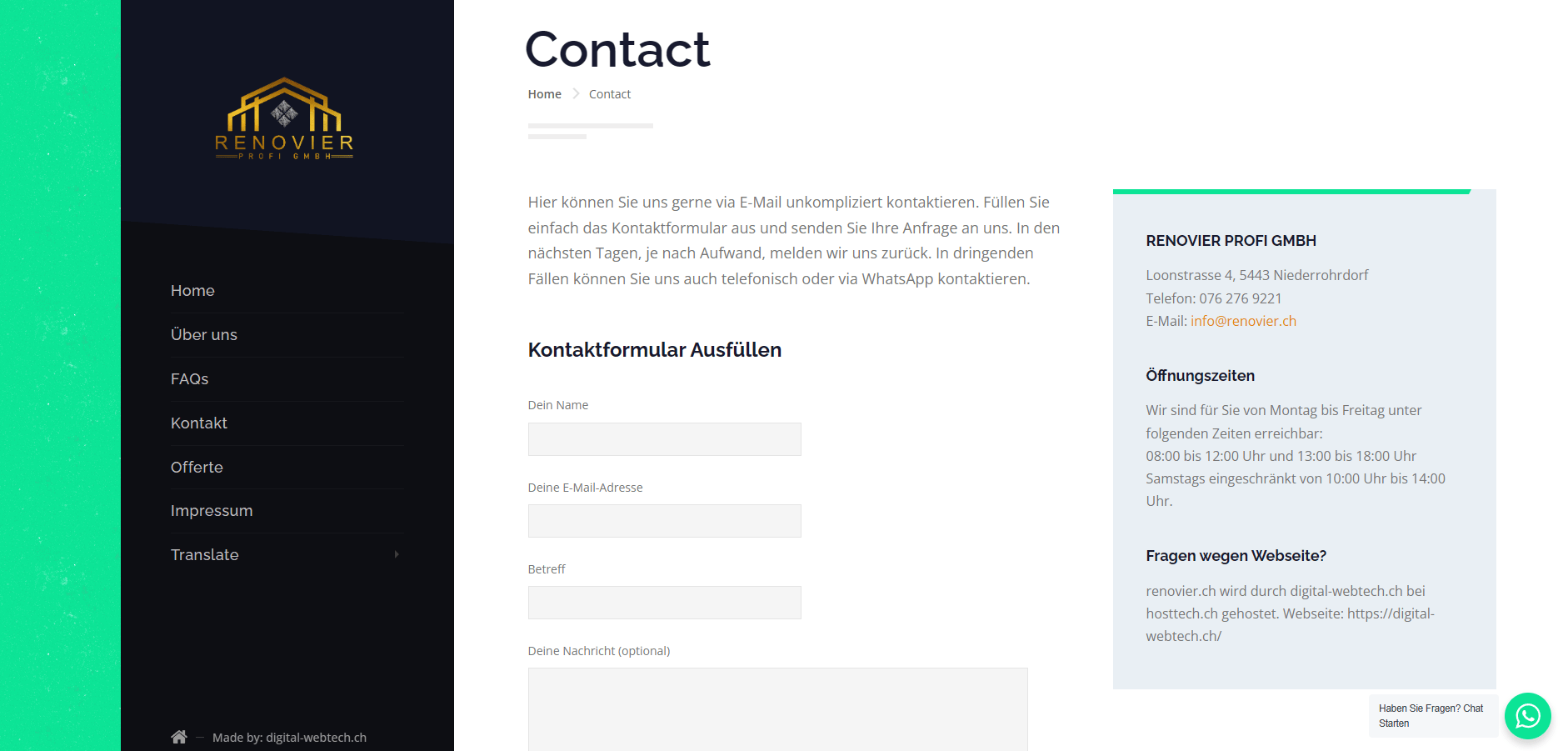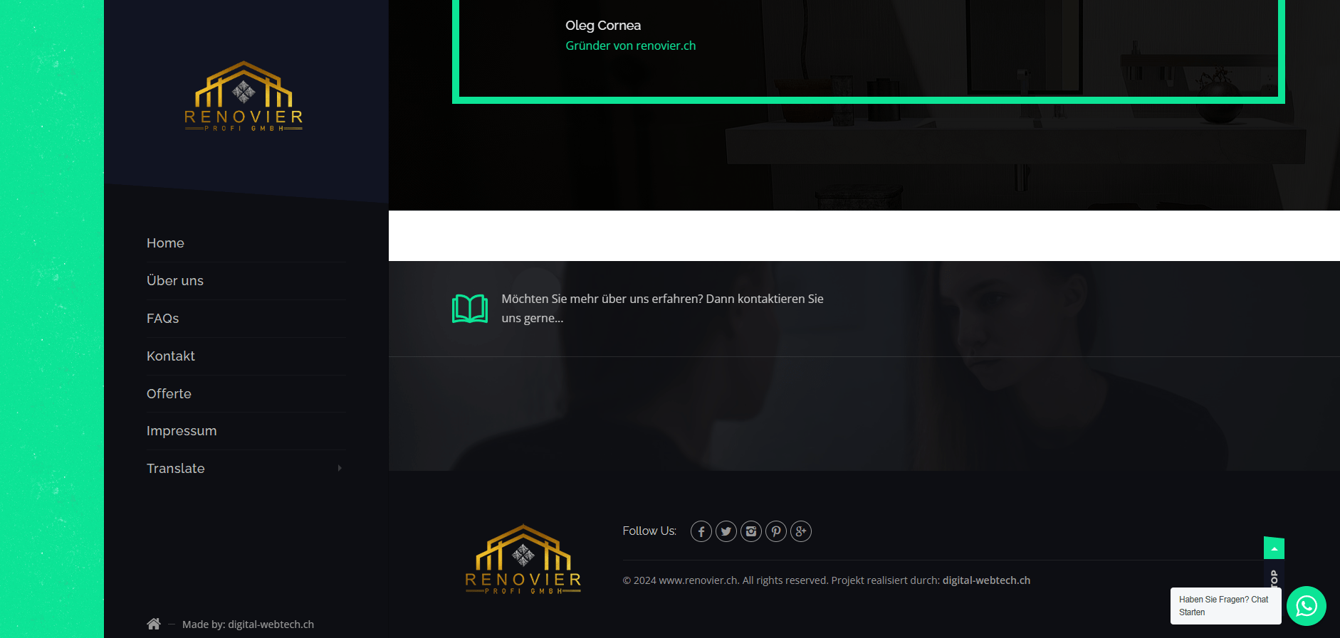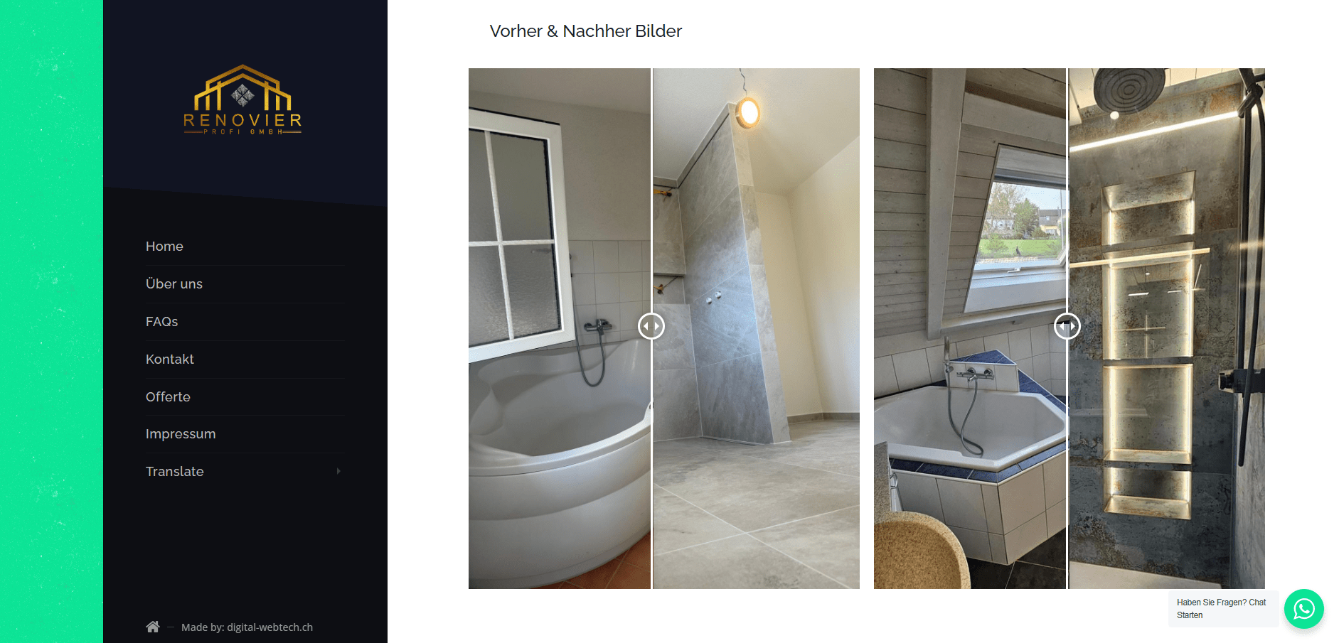 Renovier Profi GMBH ist ein Unternehmen aus dem Kanton Solothurn und bietet verschiedene Dienstleistungen im Baugeschäft. Kontakt-Form, WhatsApp Chat, Spam Schutz, Web-Slider, SMTP, SPF, DMARC, DKIM, SEO Basic, SSL usw.